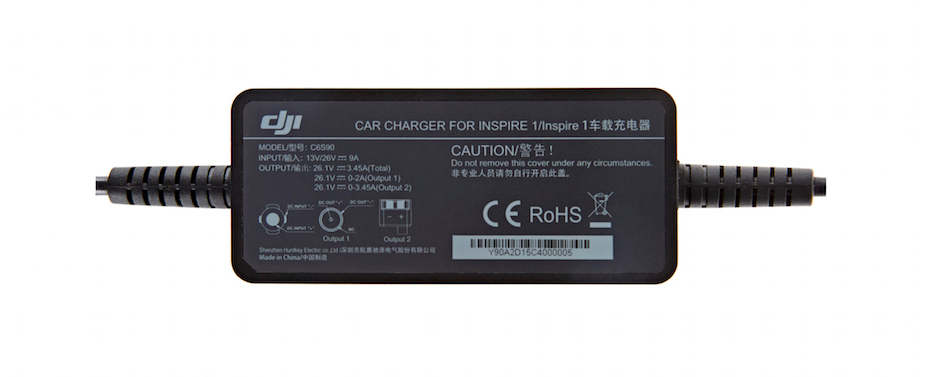 Inspire 1 Car Charger Kit, автомобильное зарядное устройство для квадрокоптеров серии DJI Inspire 1, используемое для зарядки Интеллектуальной полетной батареи или пульта дистанционного управления Inspire 1 через автомобильный прикуриватель.