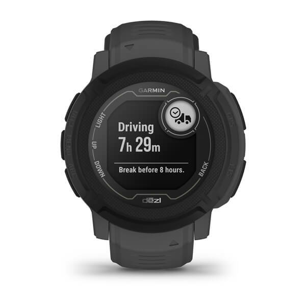 Когда вы выходите из кабины, смарт-часы Instinct® 2 dezl Edition отслеживают количество шагов, сожженные калории, минуты интенсивных занятий и прочее2.